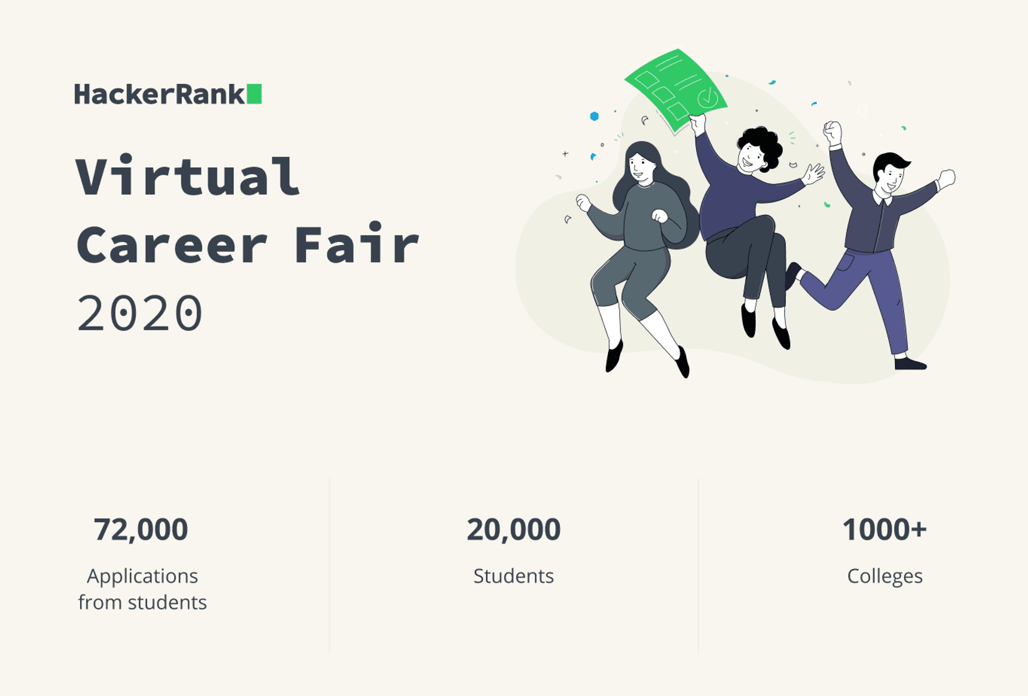Historically, 400,000+ student developers and 1,200+ schools have relied on in-person career fairs to find internships and full-time jobs every year (Data from National Center for Education Statistics). But given the impact of COVID-19, in-person career fairs around the country have been forced to cancel to enact social distancing.