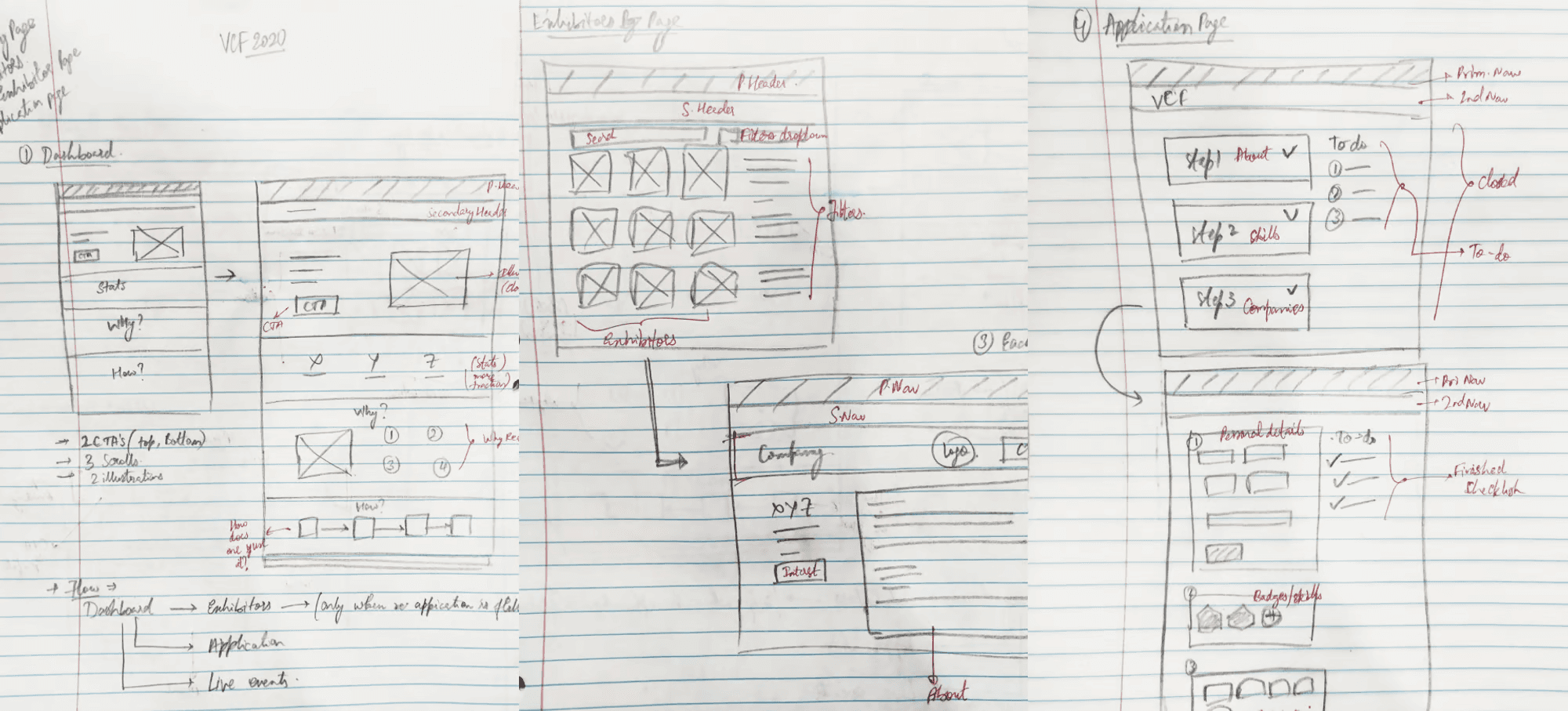 Based on the user flow and the information architecture, ee sketched out some concepts for the pages. The sketches helped us understand the idea better and we could hence receive some early feedback.