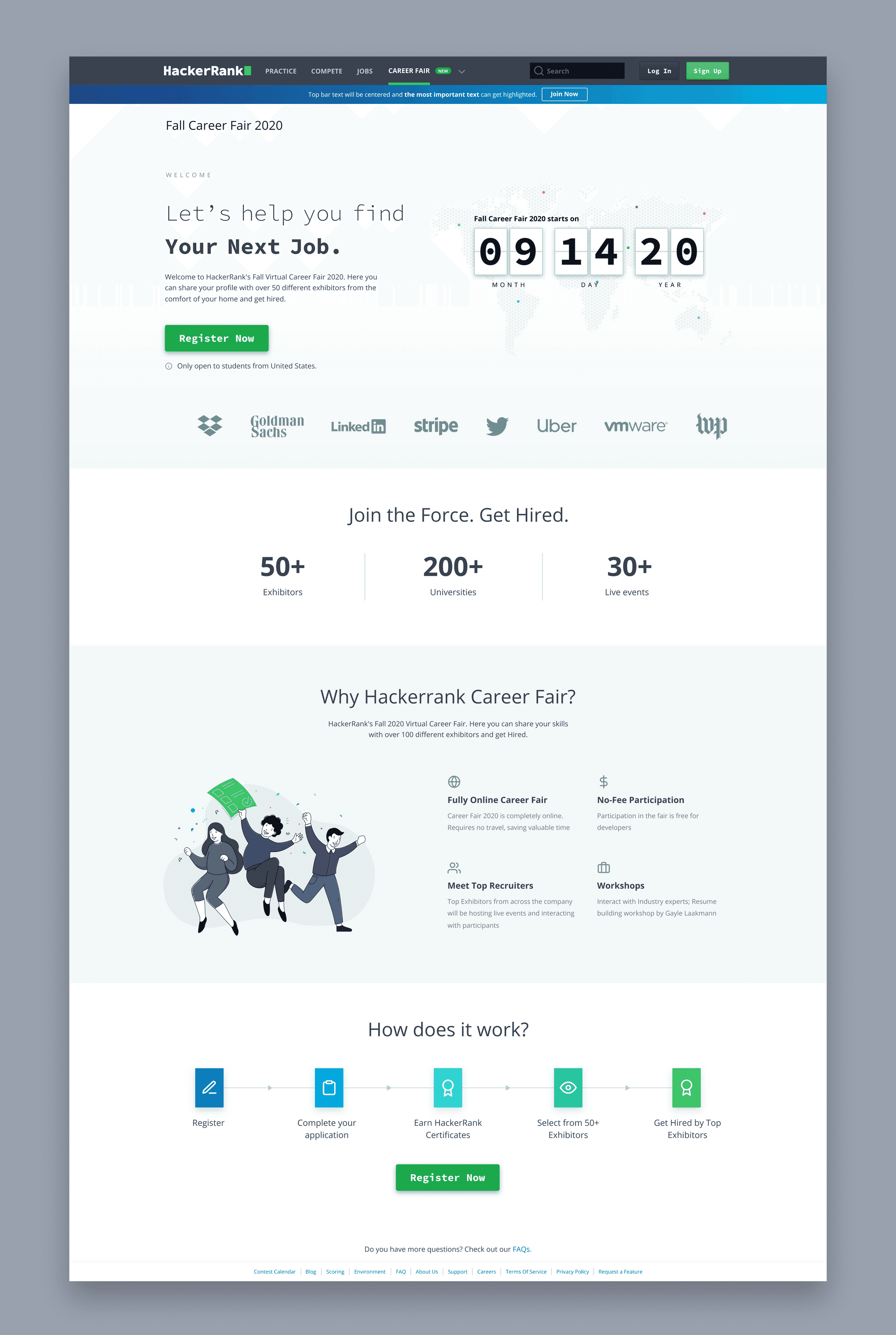 Landing page for the career fair explaining how it works and what the next steps of a candidate are.